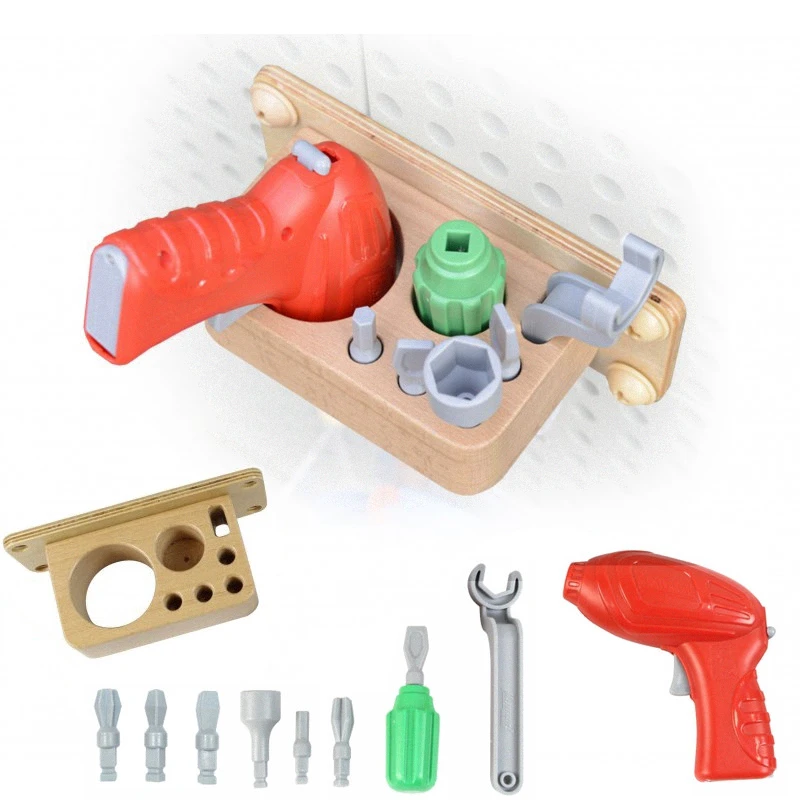 Praktická sada náradia pre deti, vďaka ktorej bude hranie so stenou STEM oveľa zaujímavejšie! Obsahuje skrutkovač so 7 vymeniteľnými hrotmi, kľúč, elektrickú vŕtačku a odkladaciu policu. Náradie sa používa na uťahovanie a uvoľňovanie skrutiek. Hračka rozvíja motorické zručnosti detí a učí ich správne používať základné nástroje.