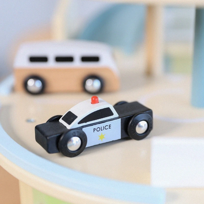 - 4 drevené vozidlá: policajné auto, odťahovka, autobus, vrtuľník