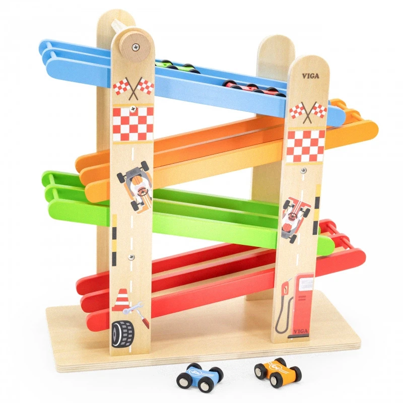 Drevená dvojitá šmykľavka pre autíčka Pretekárske dráhy