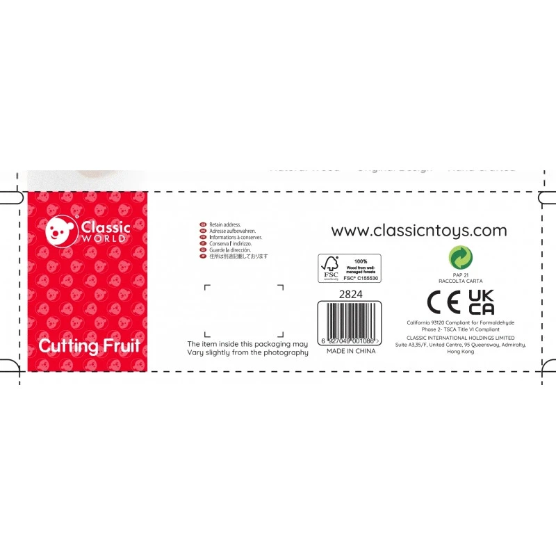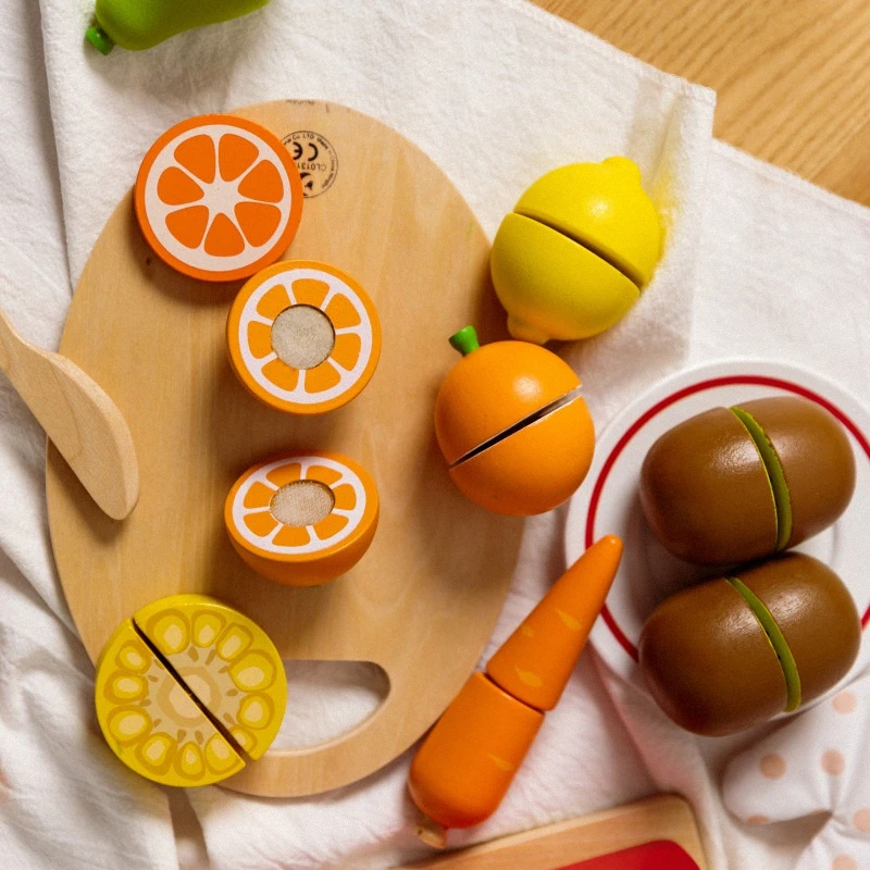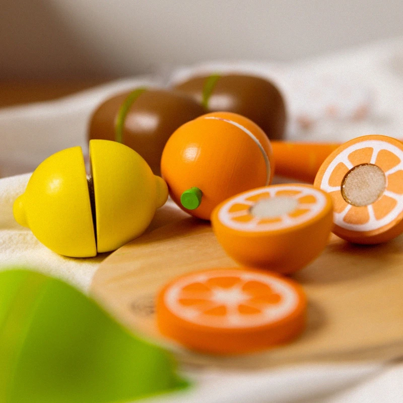 sú perfektnou sadou pre malých kuchárov, ktorí milujú varenie. Vďaka drevenému ovociu spojenému suchým zipsom ho deti môžu „krájať“ nožom a potom ho znova spojiť, čo poskytuje nekonečné možnosti hry. Sada ich učí rozpoznávať ovocie, tvary a farby a podporuje rozvoj manuálnych zručností. Vysokokvalitné drevo a bezpečné farby zaisťujú odolnosť a bezpečnosť používania.