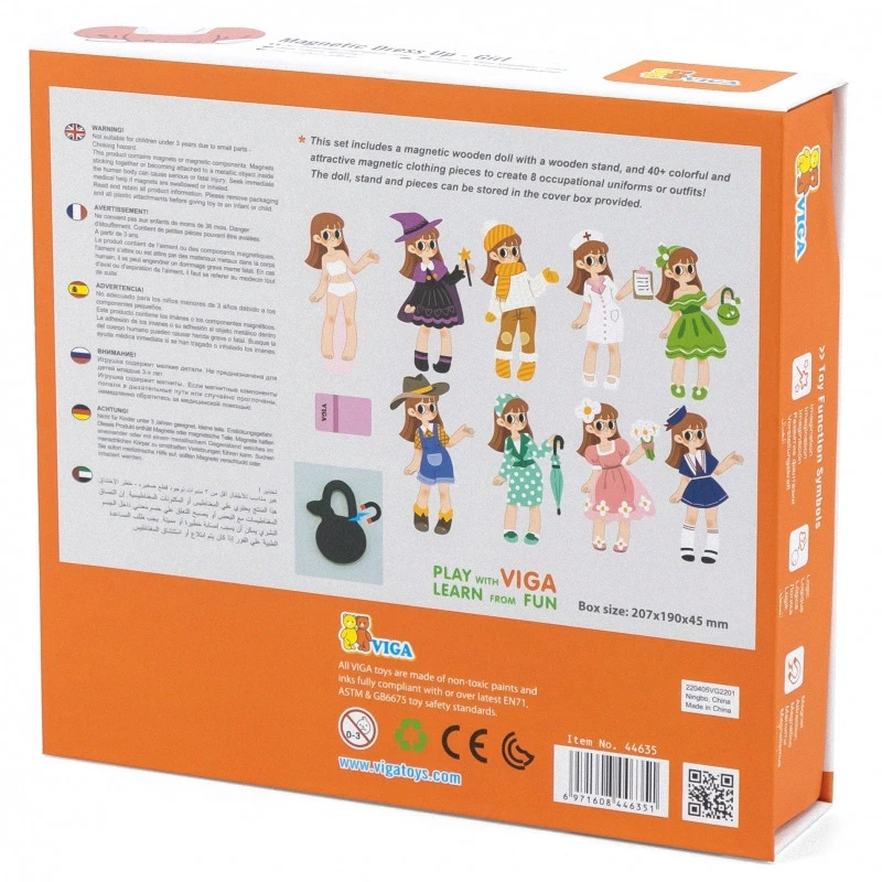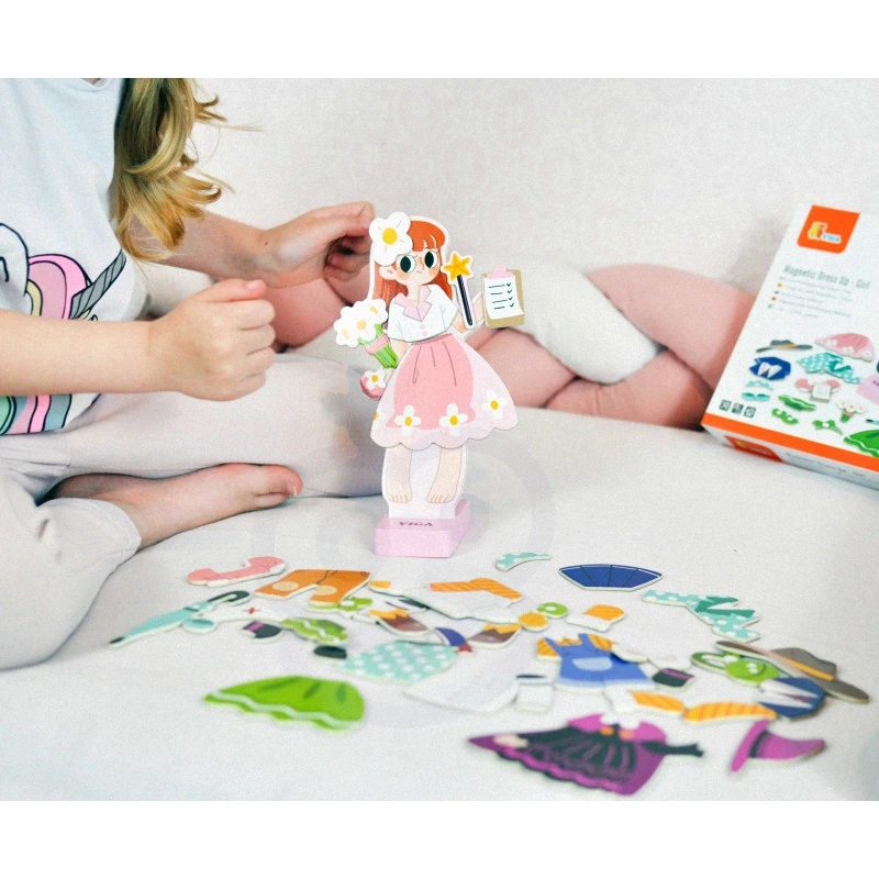 Magnetická prezliekacia dievčina od Vigy je skvelá hračka pre všetky deti. Figúrku je možné obliecť do ľubovoľnej sady oblečenia alebo ju ľubovoľne kombinovať.