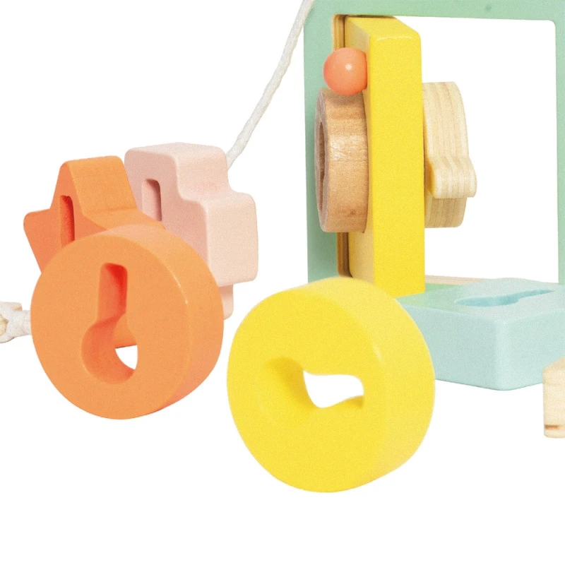 Táto fantastická senzorická hračka, Prepletaná hračka, je klasická sada drevených prvkov s otvormi, cez ktoré deti prevliekajú šnúrku. To umožňuje batoľatám rozvíjať ich motorické zručnosti – obratnosť a presnosť. Zároveň je to skvelá zábava, ktorá si vyžaduje sústredenie a koncentráciu – dve zručnosti, ktoré sa u detí rozvíjajú v priebehu rokov, takže sa oplatí ju stimulovať. Okrem toho im farebné kocky v rôznych tvaroch pomôžu naučiť sa geometrické tvary. Sada obsahuje vzory puzzle, ktoré ukazujú poradie, v akom by malo dieťa prevliekať jednotlivé kocky. Je to ideálna hračka na učenie zodpovednosti – dieťa si je vedomé, že musí strážiť a zamykať dom už od útleho veku!