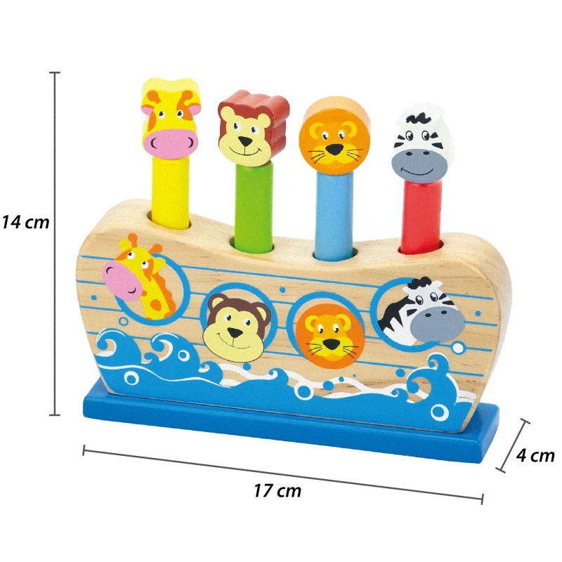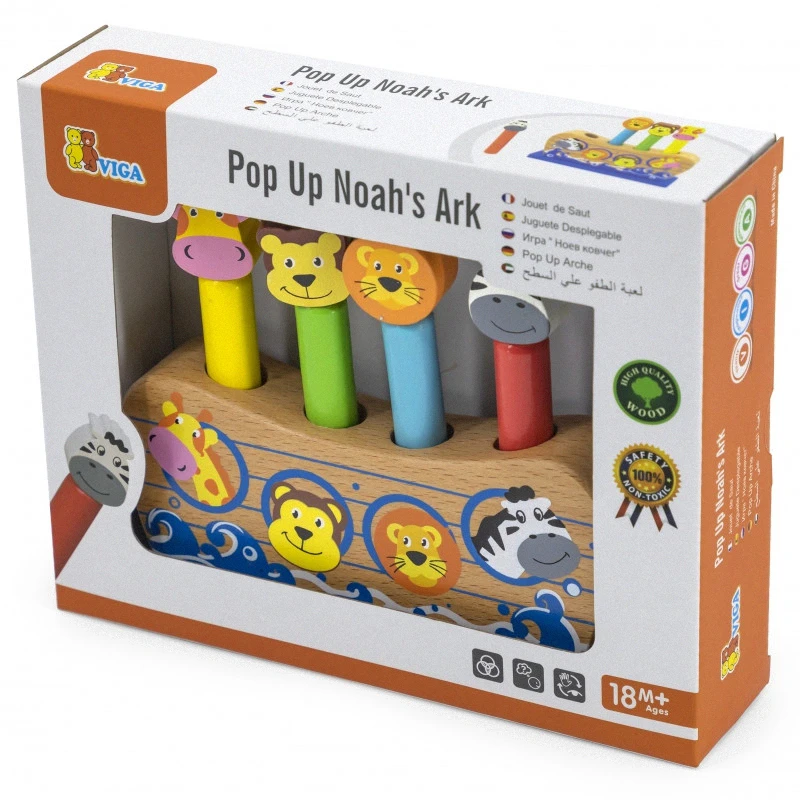 Drevené skákajúce zvieratká od renomovanej spoločnosti Viga sú hračkou, ktorú si zamiluje každé dieťa. Intenzívne farby a roztomilé zvieratká povzbudia každé batoľa k hre. Táto hračka podporuje a zlepšuje koordináciu oko-ruka vášho dieťaťa. Úlohou dieťaťa je „katapultovať“ zvieratká stláčaním na hlavy zvierat, ktoré sú umiestnené na farebnom drevenom podstavci. Figúrky žirafy, opice, leva a zebry sa na dieťa usmievajú a povzbudzujú ho k hre. Zároveň sa dieťa môže naučiť rozpoznávať, ktoré zviera je umiestnené na drevenom prste. Ďalšou zručnosťou je učenie sa rozpoznávania farieb. Vďaka estetickému baleniu je hračka ideálna ako darček.
