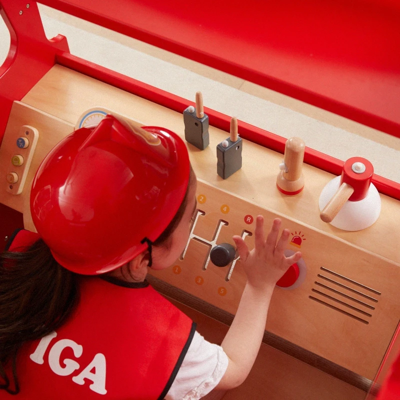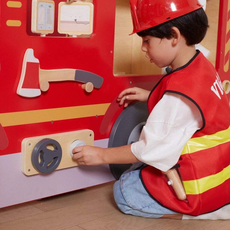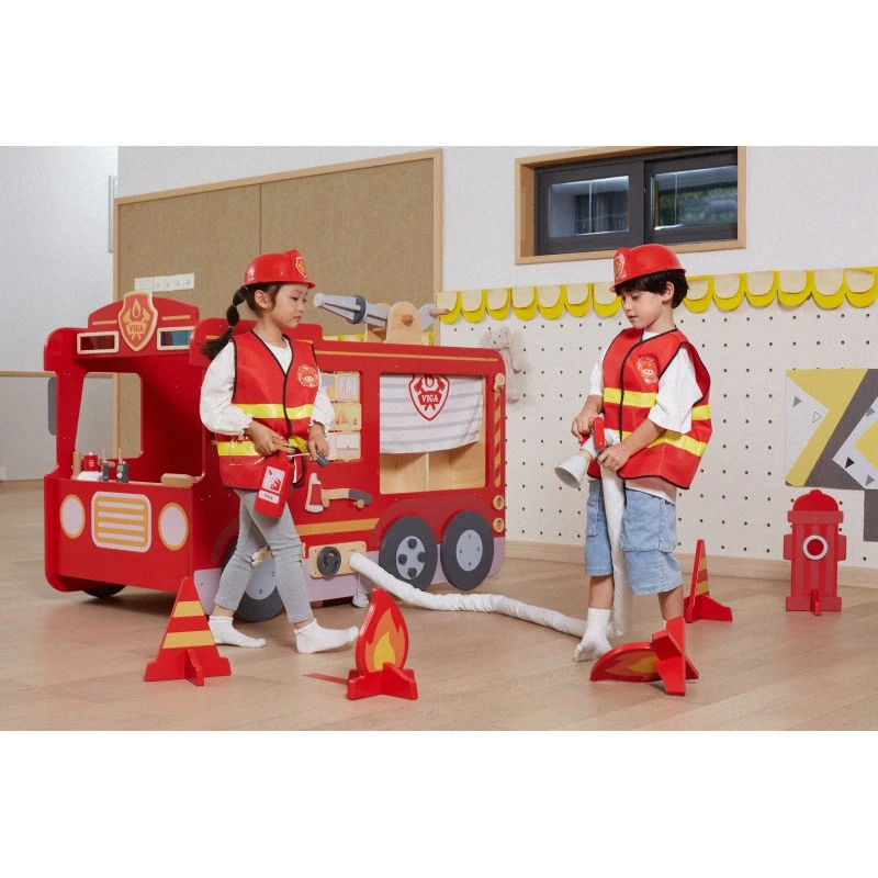 Veľké drevené hasičské auto poskytuje deťom bohatý zážitok zo sveta hasenia požiarov. Je to tiež veľké vnútorné ihrisko, kde si deti môžu spoločne vytvárať nespočetné množstvo aktivít. Deti sa môžu hrať na statočných hasičov, hasiť požiare, zachraňovať plyšové zvieratká alebo sa prechádzať zložitým záchranným bludiskom. Táto interaktívna hračka podporuje aktívne učenie a zároveň rozvíja jemnú motoriku, logické myslenie a sociálne zručnosti. Vďaka tomu sa malí hrdinovia učia dôležitosť rýchleho myslenia a konania v núdzových situáciách, ako aj hodnotu plánu a tímovej práce.