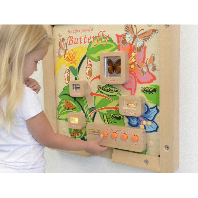 Vzdelávacie tabule zo série „Životný cyklus“ sú skvelými učebnými pomôckami, ktoré sú užitočné nielen na hodinách prírodovedy v škole. Táto tabuľa zobrazujúca štádiá vývoja motýľa ukazuje každý krok v cykle. Pomocou tlačidiel zvýraznite každé štádium a pozorujte vajíčka, húsenicu, kuklu a imago.