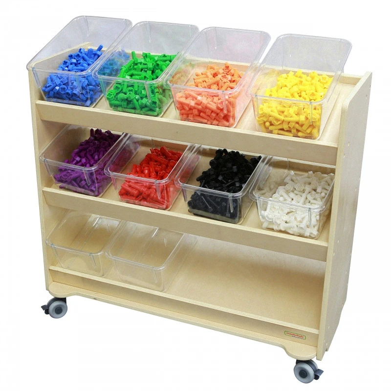 Mobilný regál ME29959 na kolieskach je moderným a robustným doplnkom každej triedy. Navrhnutý s ohľadom na najmladších používateľov umožňuje jednoduché skladovanie a organizáciu malých a stredne veľkých predmetov, ako sú skrutky, matice a hmoždinky. Vďaka svojmu elegantnému vzhľadu a funkčnosti sa perfektne hodí do vzdelávacieho priestoru a povzbudzuje deti k samostatnosti a kreativite počas vyučovania.