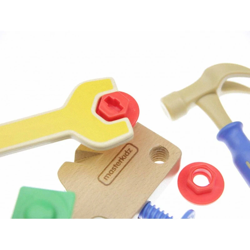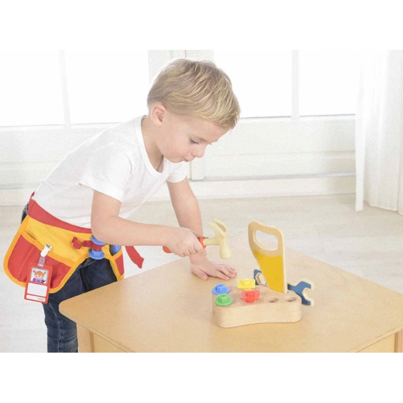 Skvelá hračka pre deti, ktorá im umožní stať sa opravárom a špecialistom na renovácie a opravy! Sada obsahuje 12 drevených nástrojov, ktoré umožňujú dokončiť akúkoľvek prácu. Sada obsahuje aj opasok na náradie, ktorý vám umožní prenášať všetky potrebné veci.