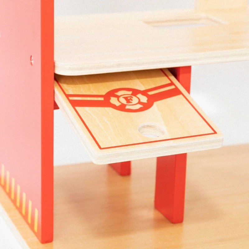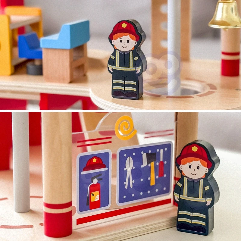 ✔️ Druhé poschodie s útulnou oddychovou zónou pre hasičov, funkčným zvončekom a šmýkačkou umožňujúcou rýchlu reakciu na poplachy