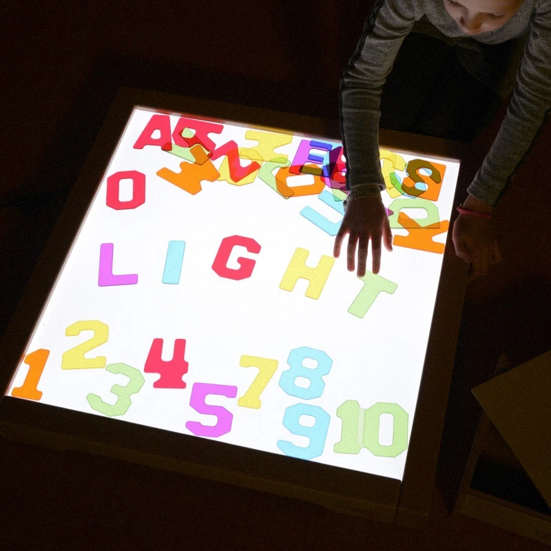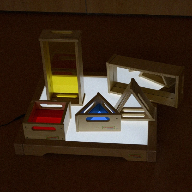 Masívny drevený LED panel s možnosťou zmeny farby od renomovanej spoločnosti. Umožňuje rôzne typy aktivít podporujúcich rozvoj kreativity, napr. miešanie farieb a ďalšie metódy učenia sa v oblasti STEM. Krásne efekty sa dajú dosiahnuť, keď svetlo preniká cez rôzne materiály, ako sú listy, papier, pieskovisko atď.